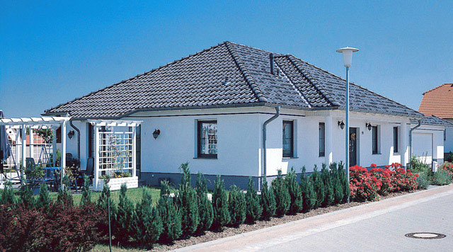 - Bodenplatte aus Stahlbeton mit massivem Mauerwerk aus Poroton-Steinen
