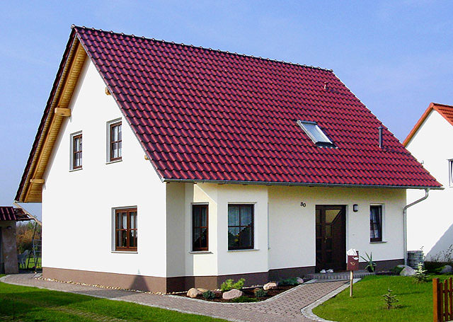 - Bodenplatte aus Stahlbeton mit massivem Mauerwerk aus Poroton-Steinen