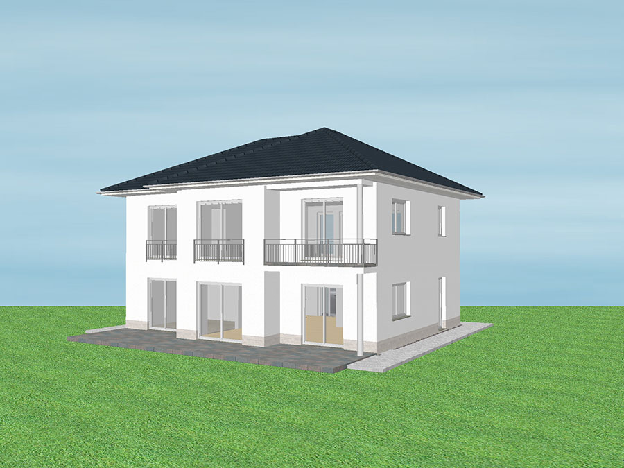 - Bodenplatte aus Stahlbeton mit massivem Mauerwerk aus Poroton-Steinen